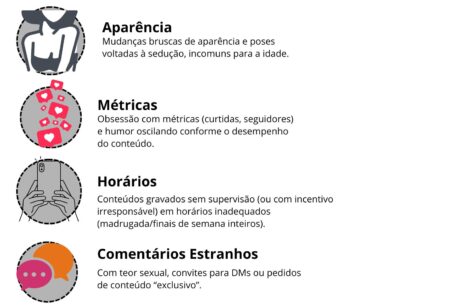 - Conivência (ou descuido) de adultos: pais, responsáveis ou gestores que permitem/organizam gravações, horários e “personas” que queimam etapas.